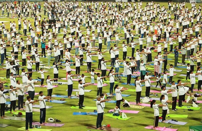 Qatar: The 10th International Day of Yoga (IDY) was celebrated under the theme “Yoga for Self and Society” at the Asian Town Cricket Stadium in Doha, Qatar on Friday, June 21, 2024. IDY 2024 was organised by the Embassy in collaboration with India Sports Centre and other Indian community organisations.